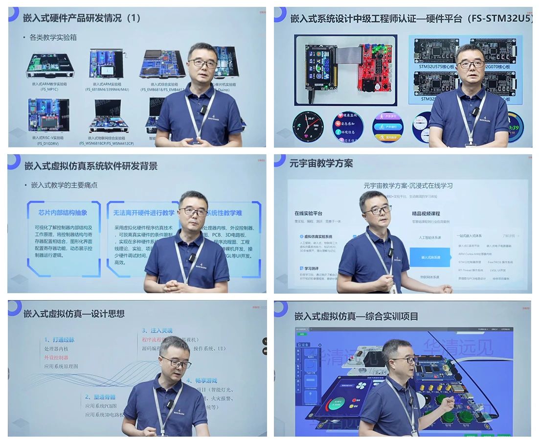 华清远见多年来始终坚持“科技创新引领教育发展”,持续加大研发投入及教学创新。7月29日上午,华清远见教育科技集团研发副总裁刘洪涛老师为师资班做了开班致辞,回顾了华清远见在嵌入式教学方向的一些软硬件研发积累、人才认证方面及创新教学模式。尤其重点介绍了此次师资班教学用“嵌入式虚拟仿真系统软件”的设计思想,可以解决目前嵌入式教学中的哪些难点,以及基于嵌入式虚拟仿真打造的元宇宙沉浸式创新教学模式。以匠心做产品,持续积累,精打细磨,为高校提供高价值的产品与服务,是华清远见20年来一直坚持做的事。