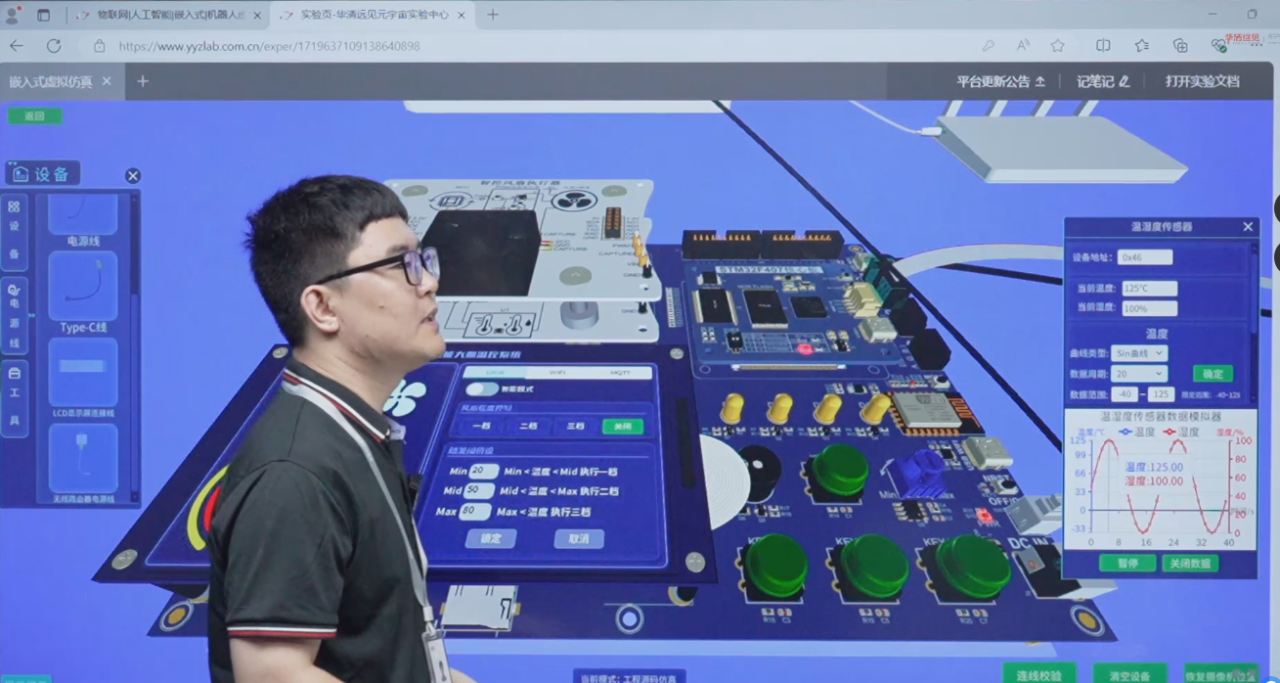 以3D模型1:1还原了嵌入式硬件系统和丰富的传感器和执行器,模拟了真实的硬件和项目应用场景,把多个硬件都放在仿真软件里,脱离硬件去教学。通过原理图仿真、PCB仿真流程图仿真、工程源码3D仿真等将其软硬件开发内容展开,能够让学生在无需实际硬件的情况下,通过模拟界面来学习和实验。老师能够轻松引导学生探索不同硬件组件的功能与交互,并且根据实际教学需求快速切换不同的硬件配置进行教学演示,降低硬件成本和管理复杂度的同时还提高了教学效率。