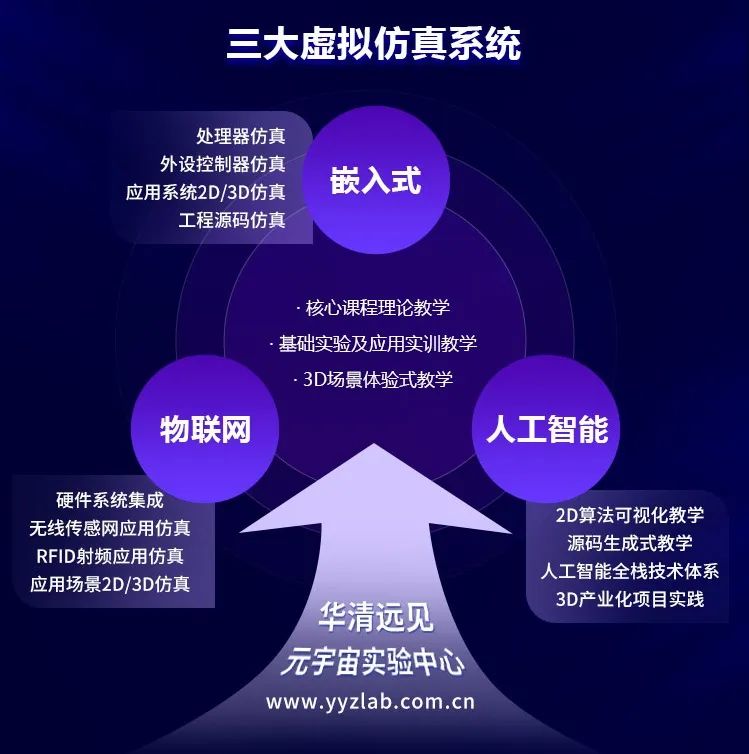 在此背景下,华清远见教育集团积极响应国家号召,致力于将最新的虚拟仿真技术融入教学实践,为此,特别推出了三大核心领域的虚拟仿真系统,包括嵌入式、物联网和人工智能,这些系统不仅为学生和教师提供了一个高度模拟真实环境的平台进行实验操作和技能训练,而且通过集成先进的仿真算法和交互式学习工具,极大地提升了学习体验和教学效果。除了虚拟仿真系统外,华清远见还打造了针对三大学科方向的沉浸式在线学习-元宇宙教学方案,从零基础到行业应用案例的体系化课程,以“课程+平台+项目”的一体化解决方案助力高校虚拟仿真实验室建设。