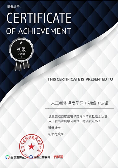 强强联合!华清远见荣获百度云《人工智能深度学习(初级)认证证书》!