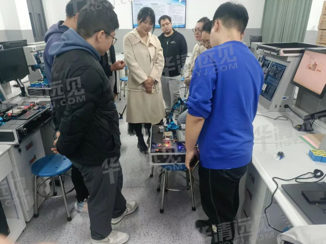 华清远见研发工程师对人工智能教学实验平台及人工智能机器人开发套件的使用及实验操作进行相关培训。