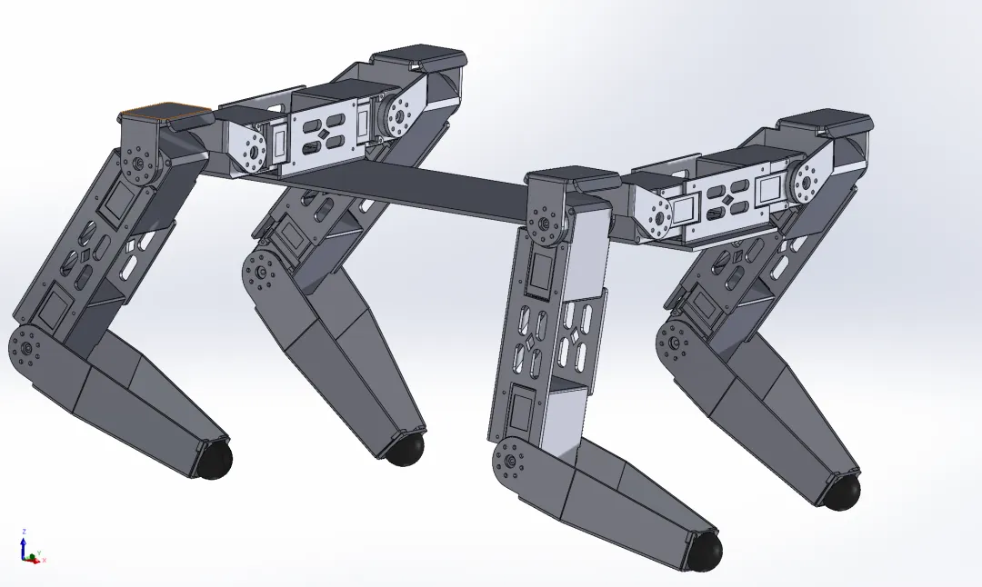 2.机械狗:基于ROS系统的12自由度四足机器狗,具备高灵活性和智能感知能力。搭载激光雷达与单目相机,结合SLAM算法实现精准建图与自主避障导航,融合目标检测与PID控制,提升环境交互与运动稳定性,适用于复杂地形探测与智能服务场景。