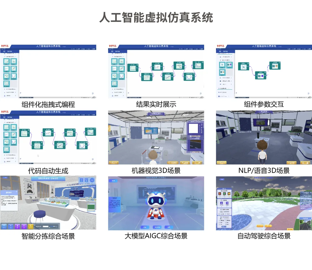 人工智能、嵌入式、物联网三大系统通过可视化交互界面,将复杂算法运行逻辑与硬件工作原理转化为可实际看到的动态流程,以 “可视化、模块化、场景化” 等优势,解决传统工科教学中 “理论抽象、硬件依赖强、系统复杂度高、缺乏实践项目” 的难题,直观呈现出虚拟仿真技术在教学中的应用价值,获得众多好评。