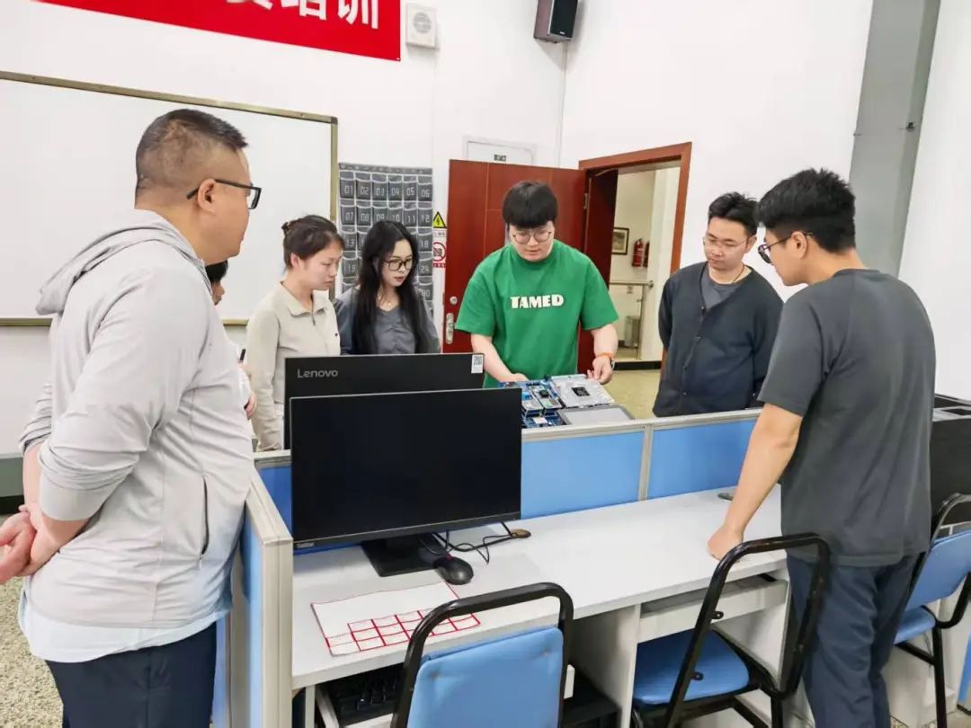 华清远见研发工程师对人工智能教学实验平台及人工智能机器人开发套件的使用及实验操作进行相关培训。