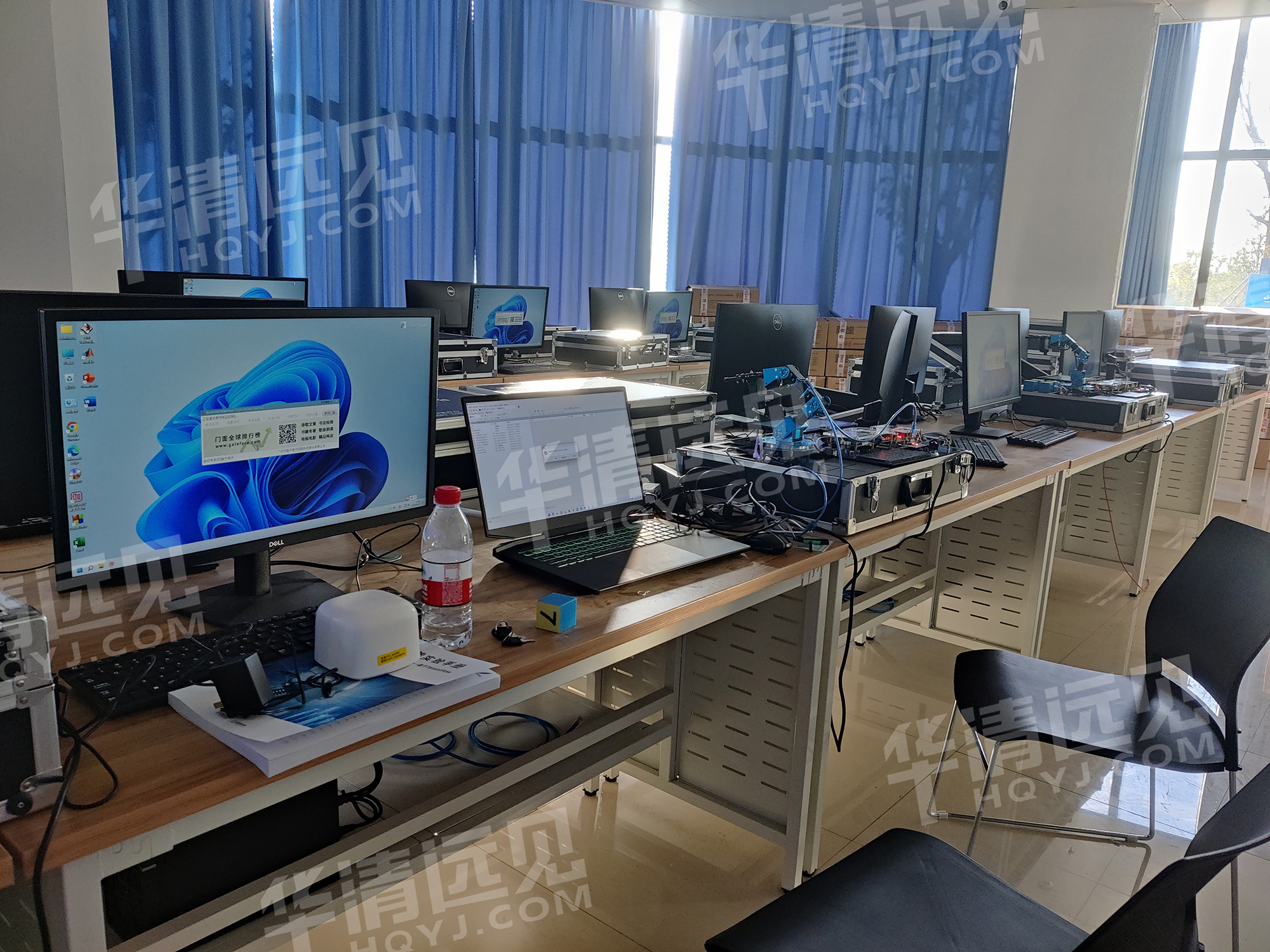 华清远见研发工程师对人工智能教学实验平台及人工智能机器人开发套件的使用及实验操作进行相关培训。