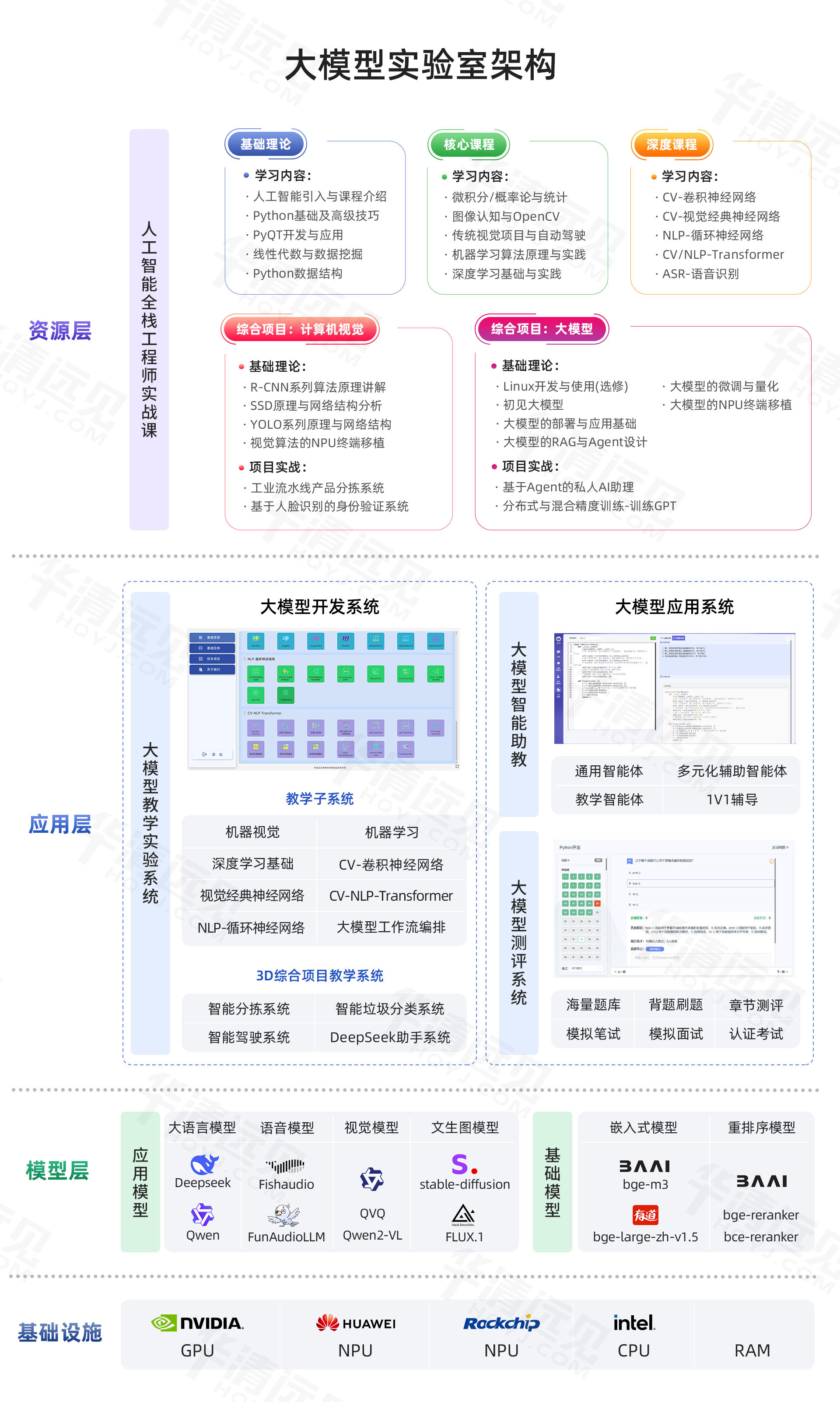 大模型智能助教系统是北京华清远见打造的AI 教学与科研一体化平台。系统以多模态大模型为核心,整合智能对话、辅助智能体、教学智能体、个性化辅导等功能,解决传统大模型教学中 “环境搭建难、理论与实践脱节、项目实战少” 的痛点,助力大模型领域 “教、学