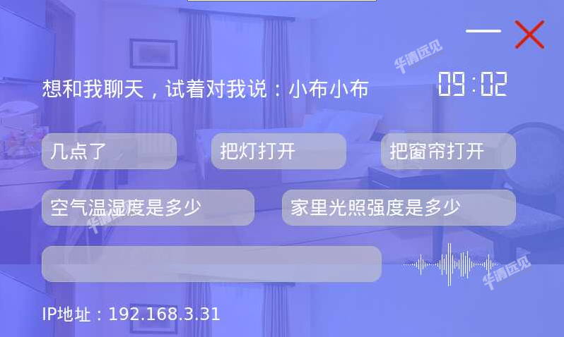 场景模拟:呼唤“小布”,下达语音指令,“今天天气怎么样”,就可以听到今天的天气状况;当需要开灯的时候,只需要说“小布,开灯”,就能达到想要的结果。屏上也会显示语音识别结果和录音状态等。