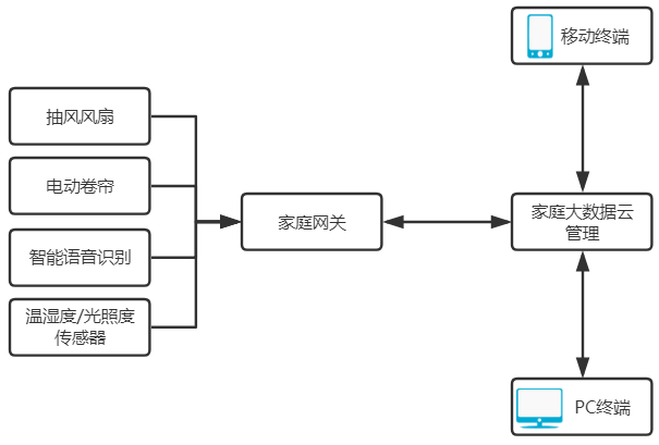 实训套件通过终端控制设备接入系统,诸如PC端、手机、平板等。通过家居控制系统控制监测设备的状态。通过温度、环境、燃气等传感器采集各种数据,实现智能场景联动,如调节室内空气流通、燃气报警等功能。智能家居实训套件主要针对于项目式教学,实训套件采用智能传感器控制节点采集各种数据,并控制各种被控对象。学生可以在套件上应用所学知识,化理论知识为实践经验。在现有的实训项目基础上进行创新,增强对物联网、嵌入式等技术的理解。