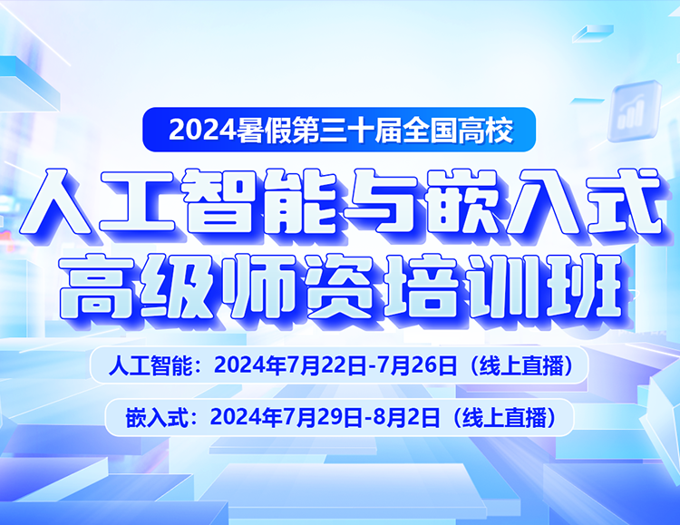 为积极响应《国务院关于印发新一代人工智能发展规划的通知》及教育部《高等学校人工智能创新行动计划》,进一步推动高等院校新工科专业人工智能与嵌入式相关教学工作,满足社会对人工智能及嵌入式人才的迫切需求,培养具备前沿IT知识的师资力量,提高高校教师教育教学改革与创新的业务水平和能力,由华清远见教育科技集团主办,软件行业协会嵌入式系统分会、ST支持,举办“2024暑假第三十届全国高校高级师资培训班——人工智能方向”和“2024暑假第三十届全国高校高级师资培训班——嵌入式方向”。